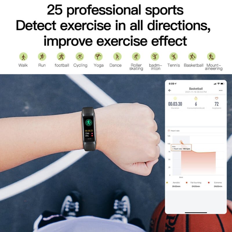 The fitness watch supports 25 professional sports modes such as high-intensity interval training such as running, cycling etc. Accurately monitor and analyze key exercise data such as heart rate, pace, and calorie consumption to help you improve your workout results. The fitness tracker is perfect for athletes or anyone who wants to stay fit.